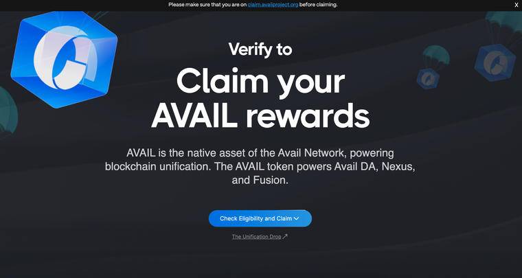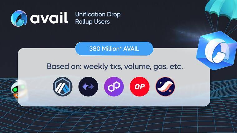 模块化叙事又一员大将,Avail,4 月 19 日宣布了将进行 Unification Drop 代币空投。354,605 个合格地址将有资格申领总计 6 亿枚代币,其申领时间至 5 月 4 日截止。
