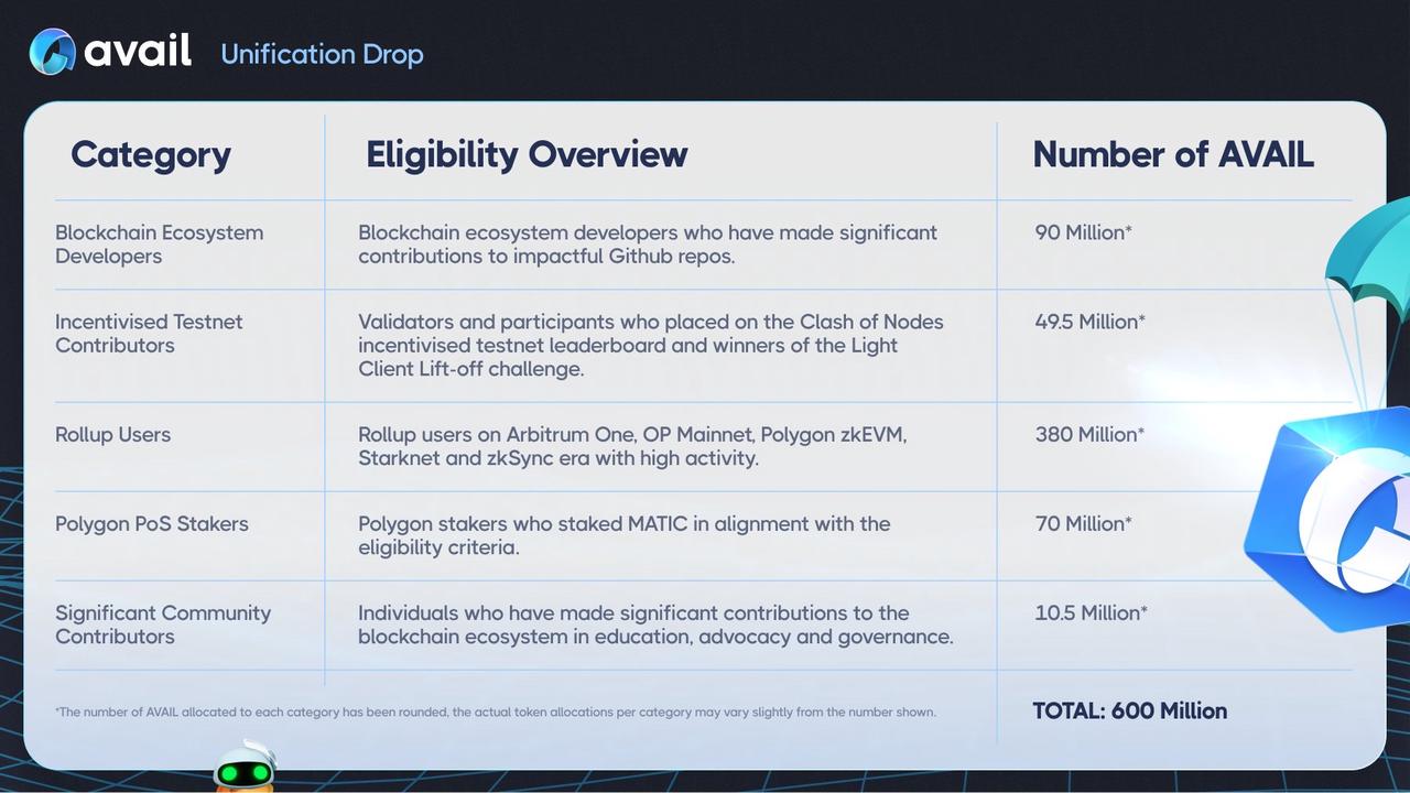 Avail 正式的空投标准