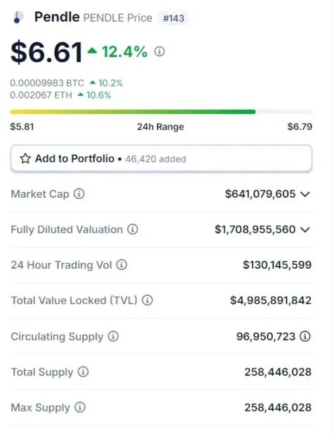 Pendle 市值: 6.4 亿美元,FDV: 17 亿美元