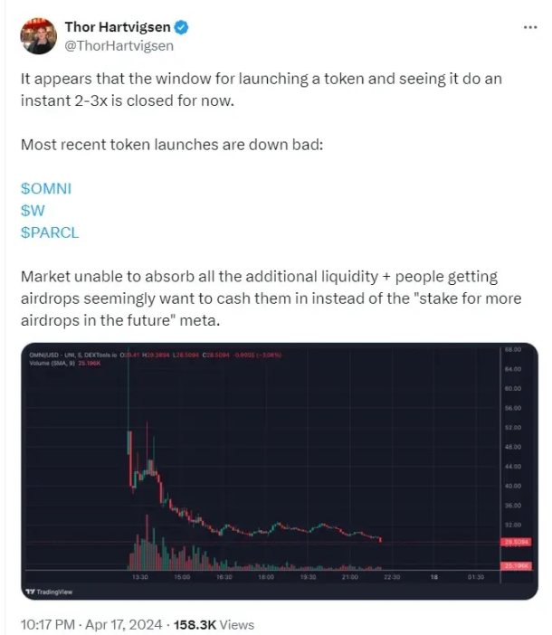Thor Hartvigsen 对此进行了很好的总结:「市场将无法吸收所有额外的流动性,以及获得空投者的想要兑现,而不是『质押以换取未来更多的空投』」。