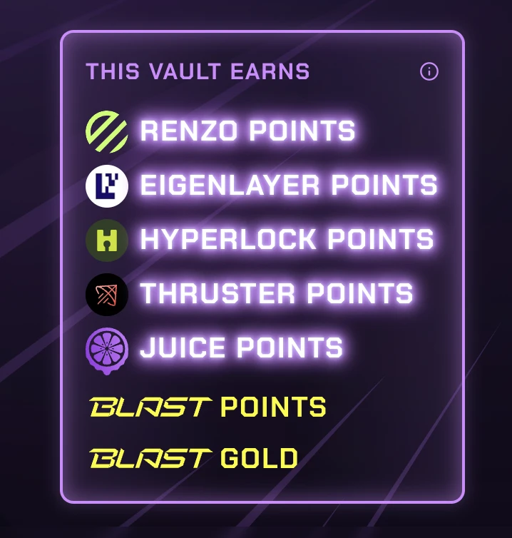 比如借贷协议 Thruster、Juice 以及收益优化协议 HyperLock 之间便有多个针对 USDB 和 WETH 的组合性收益策略。 以下图的 Renzo V3 LP 策略为例,用户可通过“在 Juice 进行杠杆借贷,在 Thruster 进行做市,在 HyperLock 进行质押优化”来同时赚取 Renzo 积分、Eigenlayer 积分、Thruster 积分、Juice 积分、 HyperLock 积分、Blast 积分、Blast“黄金积分”等多重收益。