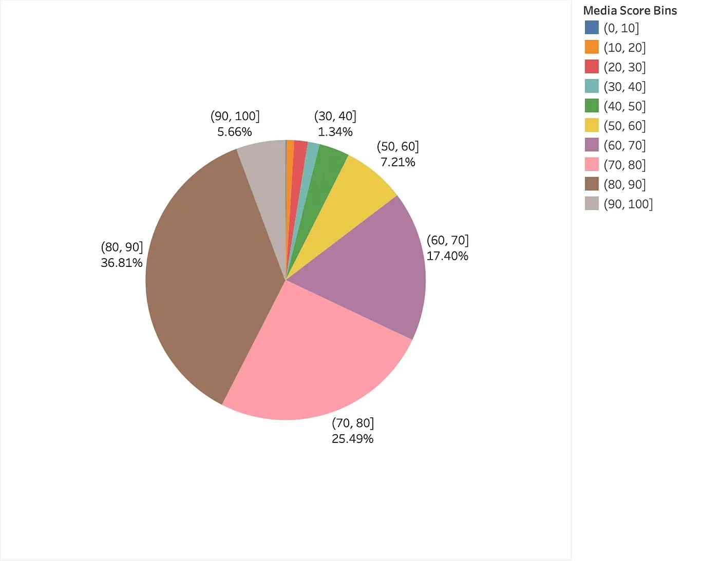 Paymaster 作为 zkSync Era 的独特卖点,它使用户能够使用非 ETH 支持来支付 gas。据统计, zkSync Era 上共有 765, 898 个地址使用过 paymaster。 这些地址中的绝大多数的 MEDIA 分数都大于 50 ,其中相当高比例的分数大于 80 。