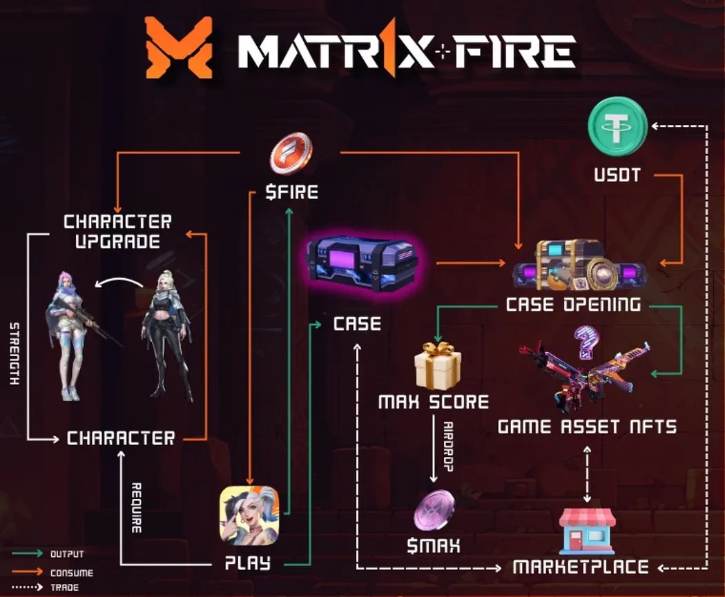 不同玩家对这两种收益的选择和博弈过程就是系统的平衡过程,下面我们以MATR1X FIRE 来详细解释宝箱机制。