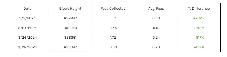 这些高价出售事件为那些正在链上寻找价值不菲的聪的人提供着动力。在二级市场上以远高于普通市场的价格售卖聪的目的正在改变某些用户支付交易费用的倾向。可以肯定地说,为了收集一个具有特殊意义的聪并在市场上出售获利高达数十万美元,会导致竞争对手给出比普通交易高得多的手续费用。