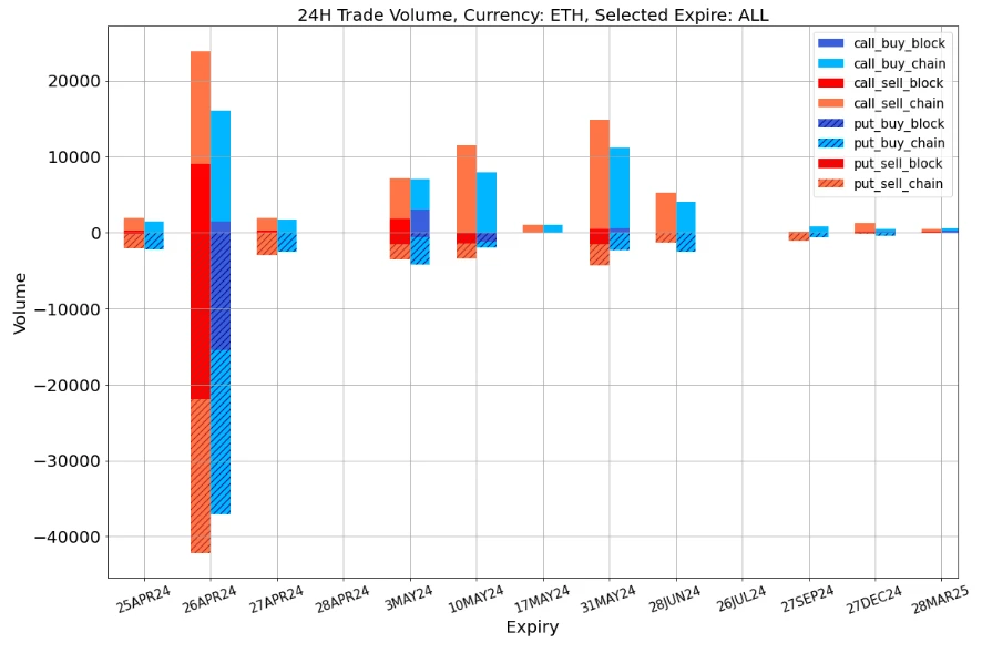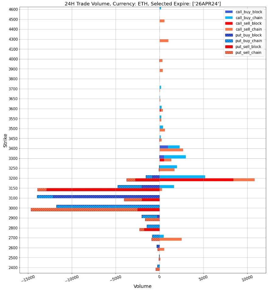Data Source: Deribit, ETH 交易总体分布和 26 APR 24 的成交