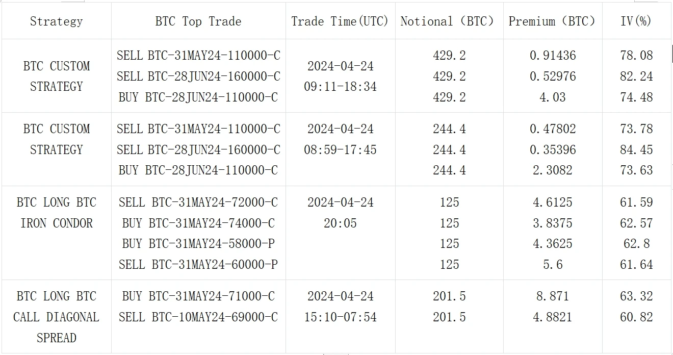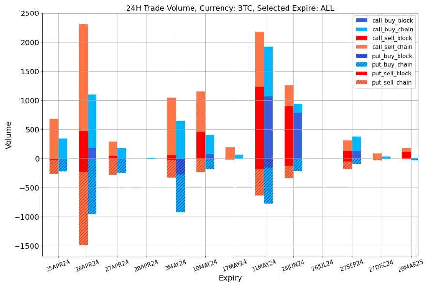 Data Source: Deribit,BTC 交易总体分布和 26 APR 24 的成交