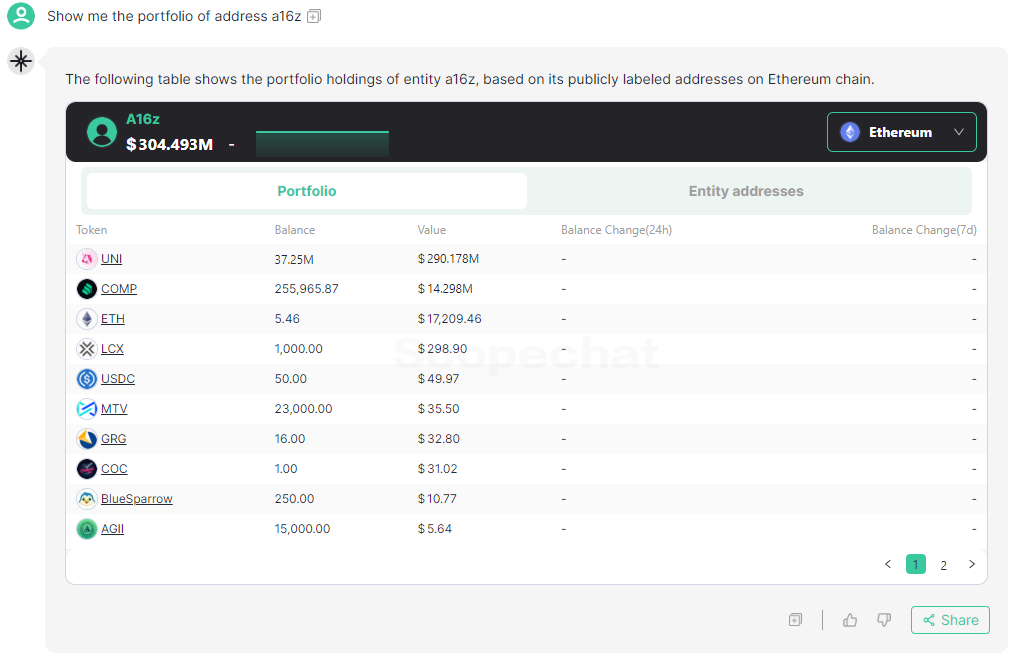 据 Scopechat 和 Rootdata 统计的链上地址数据,A16Z 公开地址的最大仓位是 Uni,其次是 COMP 和 ETH。