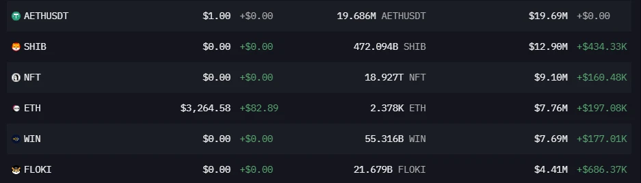 巨鲸 vladilena.eth 持有 962 万美元的资产,多数为 ezETH,还有少量的 ETH、PUMLS、TSUKA 等代币。