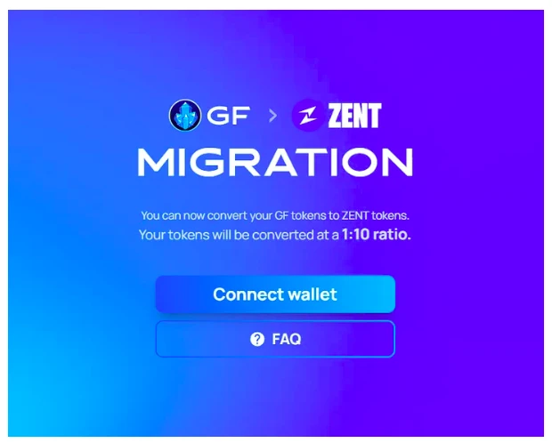 连接钱包后,网页将显示可以迁移的 GF 代币数量,以及将收到的相应数量的 ZENT 代币。