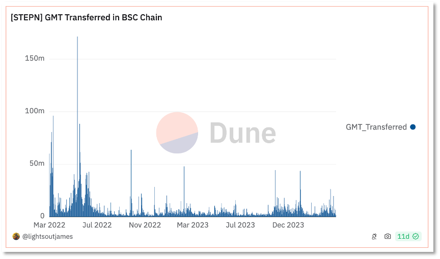 StepN的GMT在2022年经历短暂高峰后沉寂