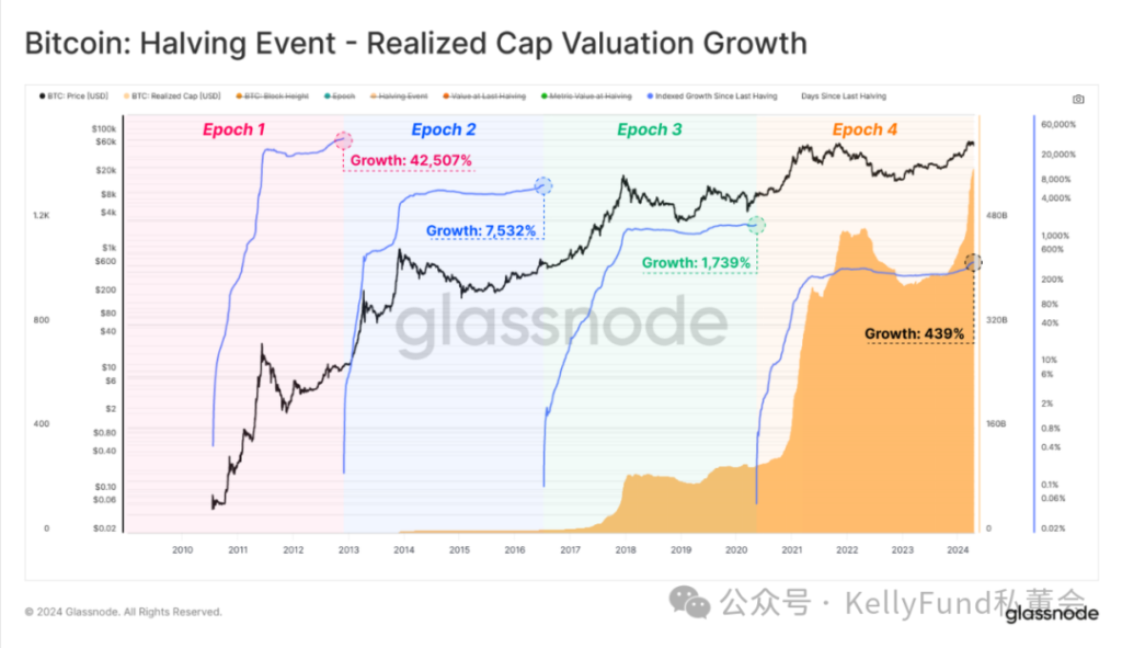 也正是因此,我们发现最近的两个纪元(第三纪元和第四纪元)中的减半事件对资产规模的影响反而更加丰富且更堪解读。