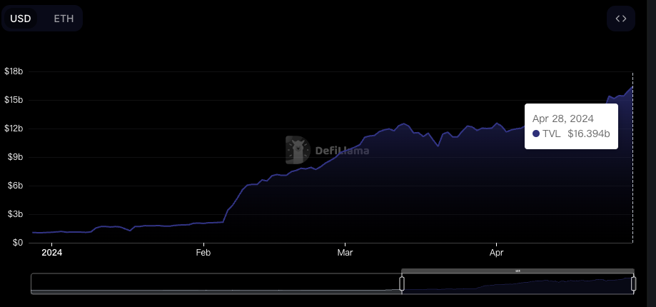 以太坊今日的平均 Gas Fee 已降至每笔网路交易仅 1.12 美元,最低为 5 Gwei,相比去轮牛市,以太坊网路的链上交互现在确实冷清,除了价格回撤导致需求下降,Restaking 赛道可能是最大原因。