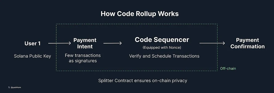 使用类似Rollup的结构可以实现: 灵活性:意图可以代表各种未来活动,而不仅仅是支付交易。此外,如果必要,Solana作为链也可以被替换。 即时和私密:鉴于排序器的软最终性,即使在Solana拥塞时,支付也是即时的。虽然交易在链上可见,但确切的价值和意图保持模糊,确保用户隐私。