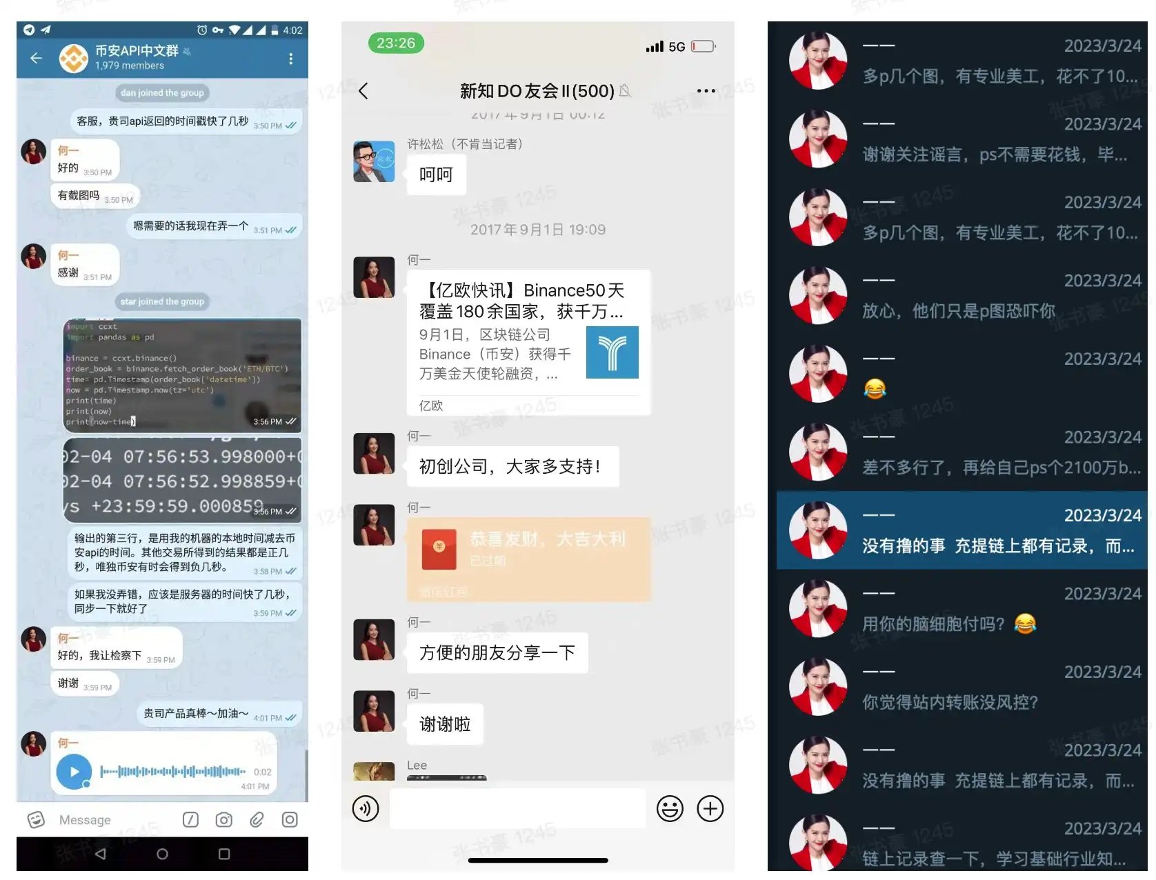 在币安转𢧐海外后,何一成了币安与中文社群最稳固的桥樑。不管在哪裡,什麽时间,你都能够找到她。在使用者眼裡,何一是币安的「首席客服」,对讯息的反应最迅速,夜深常活跃于各类在微信群,币安只要一有活动,她一定亲自在群裡发红包请大家转发。在路人眼裡,何一是币安的「救火队长」,以前是冲在一缐和竞品厮杀,如今是第一时间出现在币安的各种 FUD 现场辟谣。