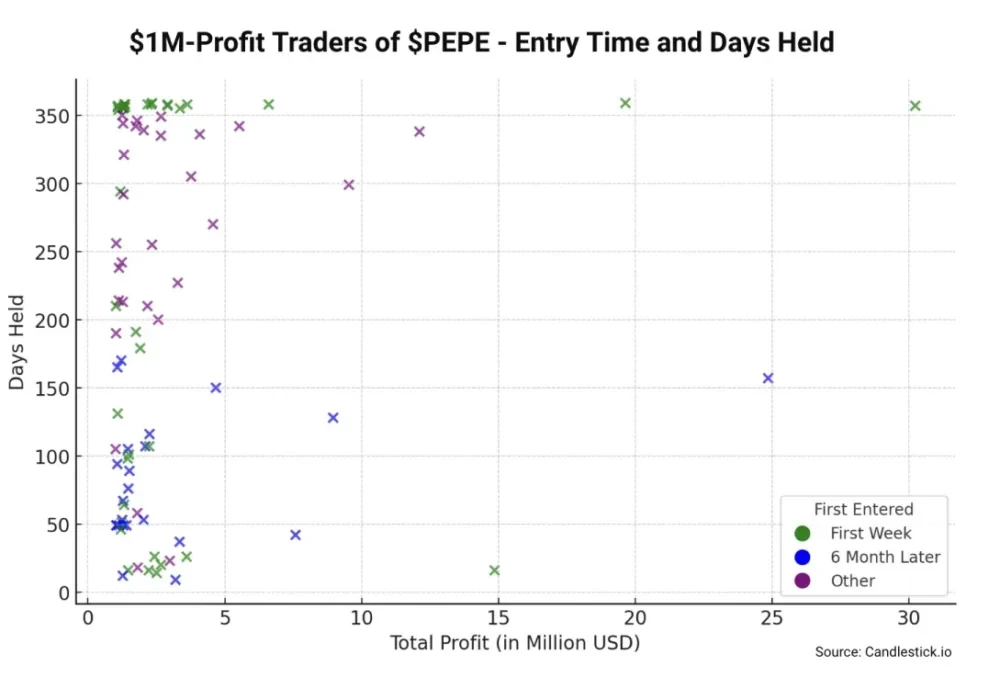 88 个地址在$PEPE 上赚取了 100 万美元以上,是否必须要尽早入场?