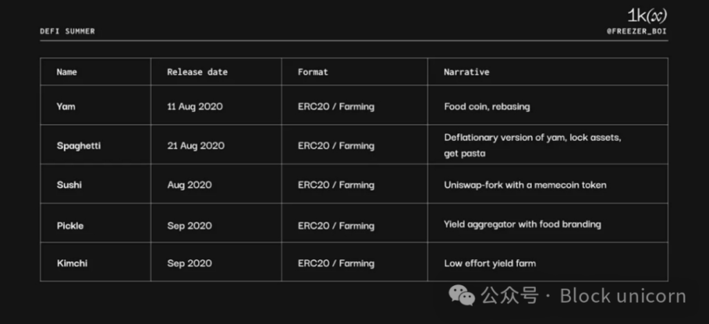 这项创新𫔭啟了 「DeFi 夏天」,达到高峰时,「食品币」 收益农场提供了将代币锁定在 Yam 或 Pickle 合约中,以获得 10000% 年化回报(以迷因币计)。