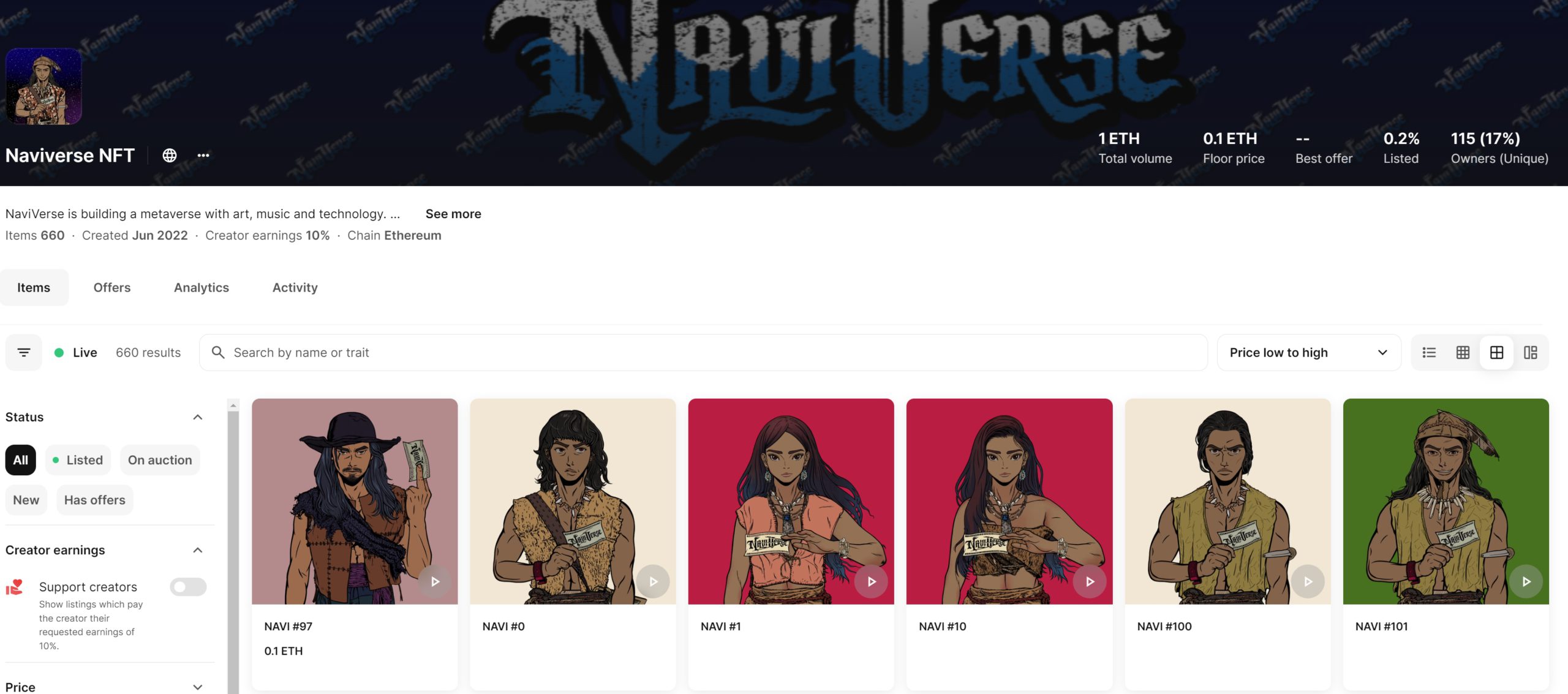 然而,随著 NFT 风潮当时已成强弩之末,该 NFT 系列交易量不如预期,最初预期销售 8,160 枚,每枚售价约 0.33 ETH,但最终仅发售 660 枚,据 Opensea 数据 显示,该 NFT 系列迄今总交易量仅 1 枚 ETH,地板价 0.1 枚 ETH,上次一笔交易纪录更是要追溯至 2023 年 12 月。