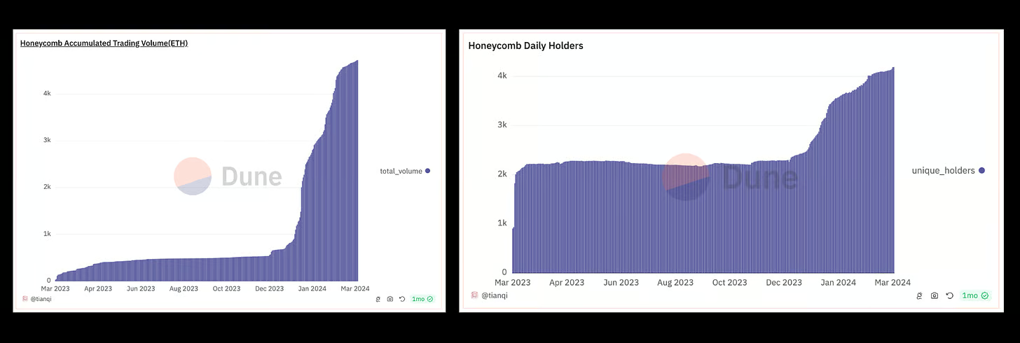 值得注意的一件趣事是,早期持有者得到了丰厚回报(例如 Chainlink,Axie 等),你的社区自主繁荣,几乎形成了自己的生命。以“ The Honey Jar ”为例,这是一个由 Janitoor 领导的 Berachain 社区运营项目。Jani 最初是一位 Bong Bear 的大户,现在运营着一个超过 20 人的团队,已经吸引了超过 10 万用户加入到 Berachain 生态系统中。