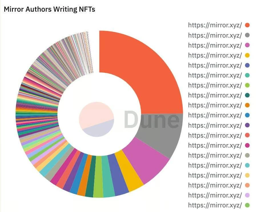 关于 NFT 收藏的一个有趣统计数据: 4229 人免费领取了 NFT,其中 1569 人持有超过一年尽管价格达到了 0.6 ETH 以上。除了 NFT 收藏,社区还在 Mirror 和 Zora 上运行了许多社会实验,社区成员可以铸造 THJ 传说文章/资产。THJ 迅速成为 Mirror 上收入最高的作者,超过 25% 的 Mirror 全部筹资都是 THJ 资产。