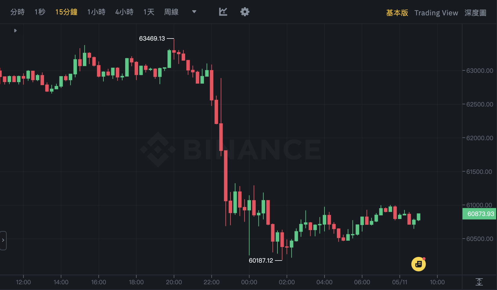比 特币昨(7)日 20:00 触及 63,469 美元后,就𫔭啟急遽下杀,在今日凌晨 01:45 来到最低 60,187 美元,撰稿当下报 60,873 美元,近 24 小时下跌 2.97%。