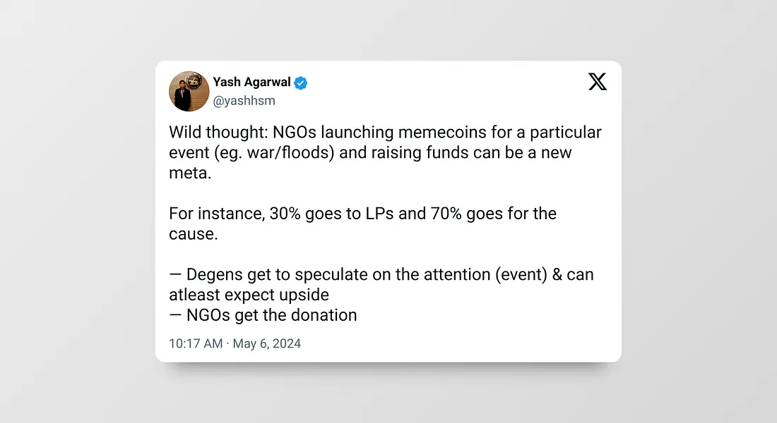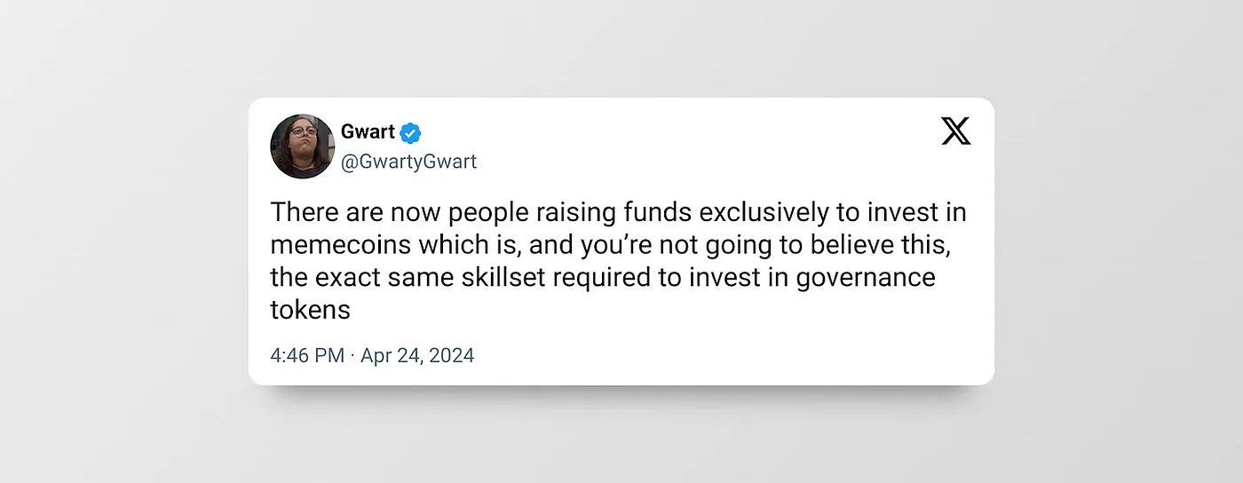 这种趋势最终将导致 Meme 和治理代币的融合。重要的是要注意,并不是所有的 Meme 都是平等的;骗局很常见,但它们比风投悄无声息地进行的骗局更容易被揭露。