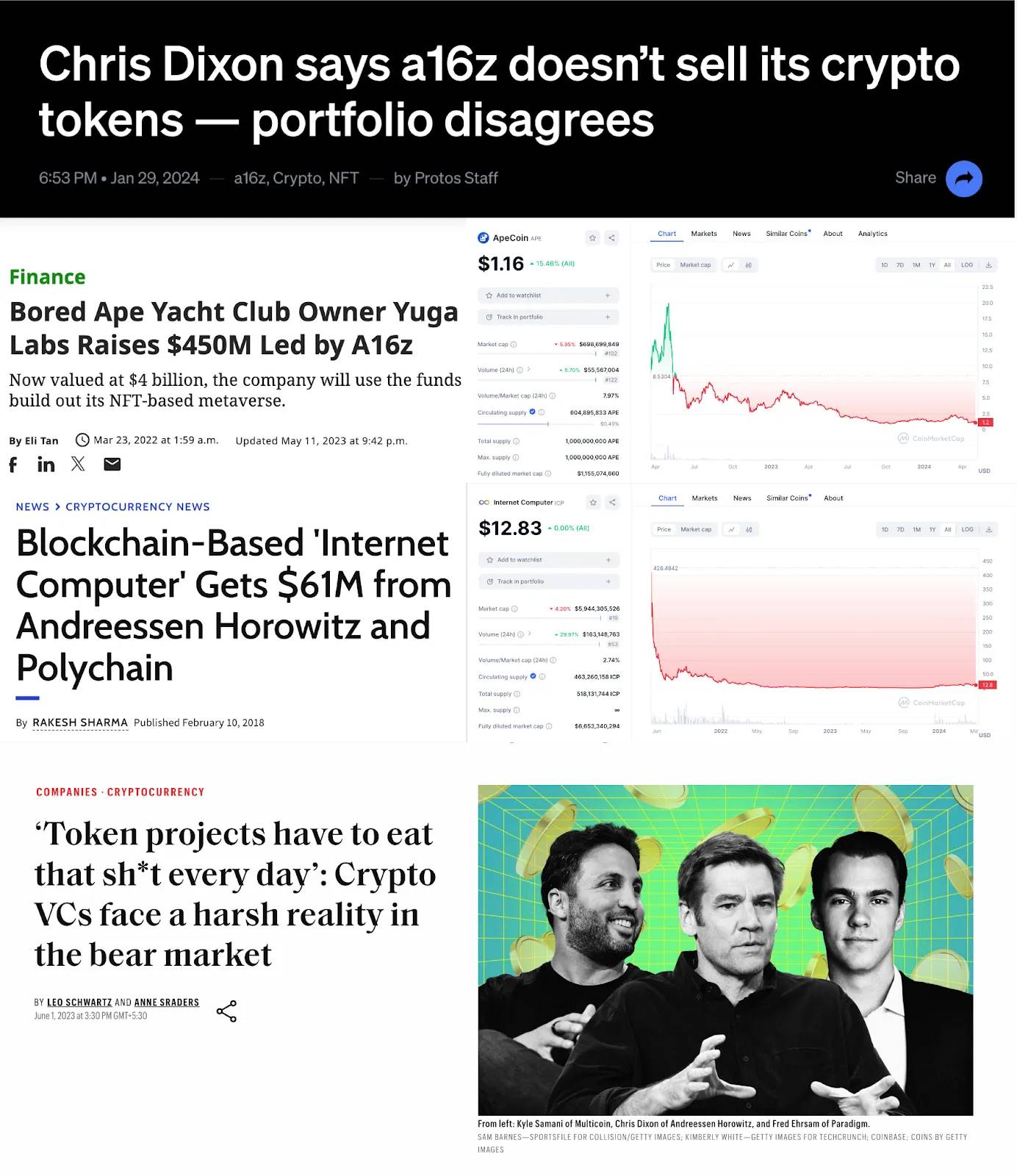 与此同时,Chris Dixon 发表了 一篇更为清醒的文章,强调了美国证券法律制度的系统性荒谬 —— 强调了最佳项目如何陷入监管的困境,而 Meme 币却能够脱颖而出,因为它们没有“假装 Meme 币投资者依赖任何人的管理努力”。这间接承认了加密货币其余部分的伪装(假装行为) —— 各种团队对协议的管理努力,而我们称它们为治理代币。