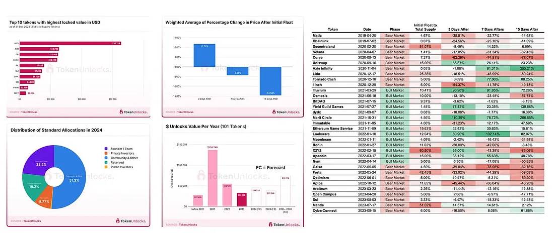 散户比以往任何时候都更加敏感于 解锁 。仅在 5 月,就有价值 12.5 亿美元的 Pyth 将被解锁,加上来自 Avalanche、Aptos、Arbitrum 等的数亿美元。