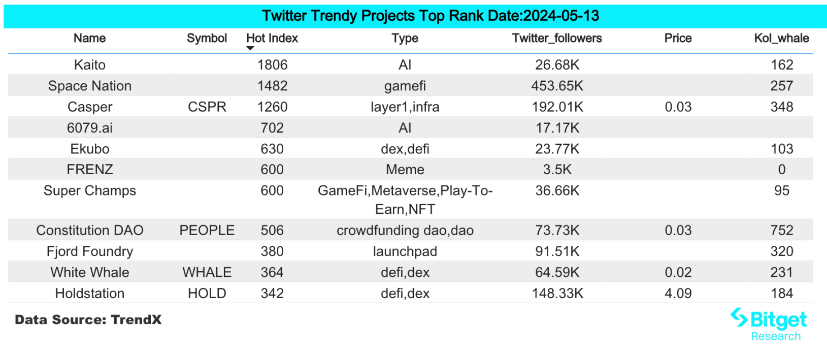 (1)亚洲各地区昨日的热搜关注点主要集中在近期热点:AI、SocialFi、MEME