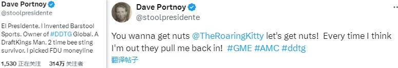 甚至 Barstool Sports 的创始人 David Portnoy 也准备加入进来,他引用了教父 3 中的一句台词:“你想疯狂一下吗,那就疯狂一下吧!每次我以为我退出了,他们又把我拉回去。”