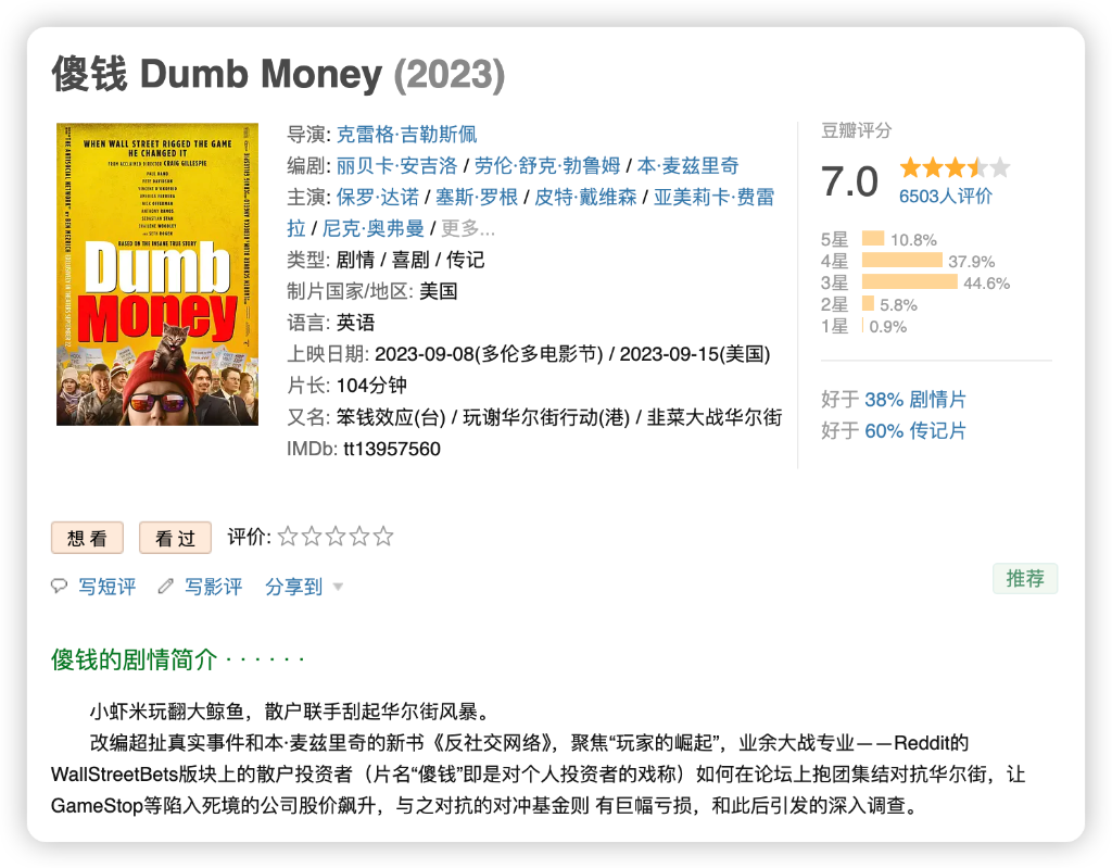 而 Keith 功不可没。这场散户与机构的世纪轧空大战,被散户们誉为「大卫与歌利亚之战」,还被改编成了电影《傻钱》。