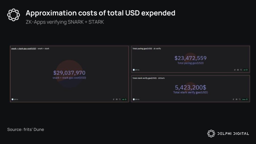 在过去的几年中,zk 应用程序(主要是 Rollup)花费了近 3000 万美元的 Gas 来验证和在链上发布证明。
