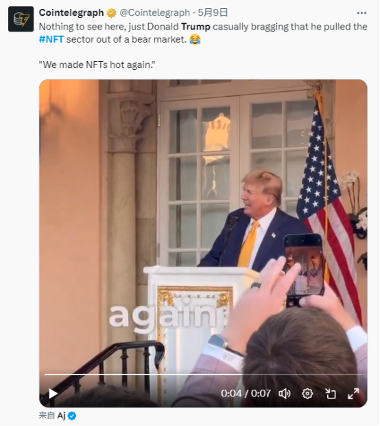 不过短短几年后,特朗普就摇身一变成为了加密的支持者与追随者,要让NFT再次伟大,甚至还要暗讽某个80岁老头不能熟练使用加密软件。
