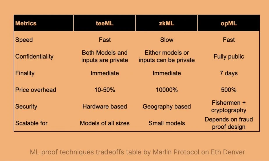 因此,由于这些限制,zkML 现在可能仅适用于非常小的 ML 模型。在这种情况下许多 AI 项目不得不考虑其他的验证方法。目前主要有两种替代方案:
