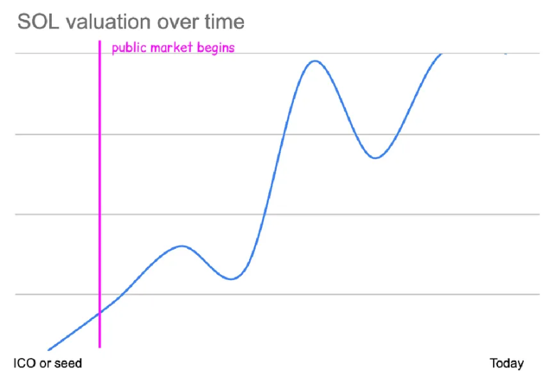 最初的几轮特权使投资者能够私下有效地获得 Solana 价格上涨的 10 倍(0.04 美元→ 0.5 美元)。