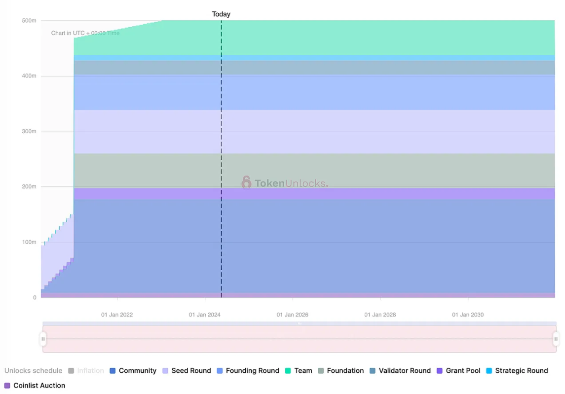 仔细观察,你会发现只有大约 2% 归因于「社区销售」。剩余的已解锁流通量归因于「生态增长基金」,这是专门为增长激励(如空投)和项目生态系统的贡献者(包括开发者、教育者、研究人员和战略贡献者)预留的一部分代币。