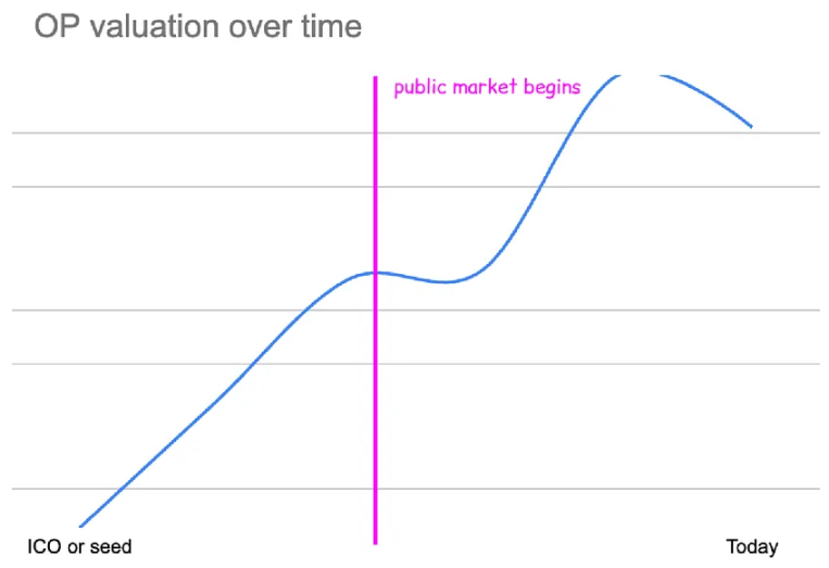 OP 的种子轮估值约为 6000 万美元,然后在 TGE 之前进行了约 3 亿美元和约 15 亿美元 FDV 的私人筹款轮次。