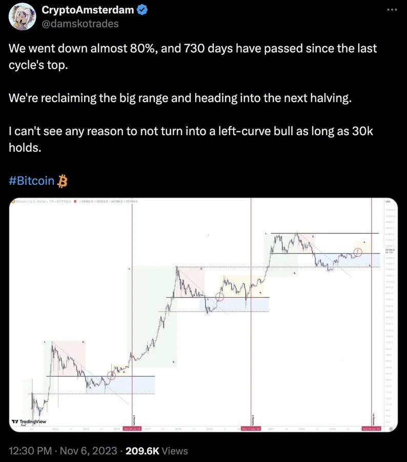 这种模式让我们在 2023 年 BTC 收回区间低点后入场,进入了疑虑期阶段。