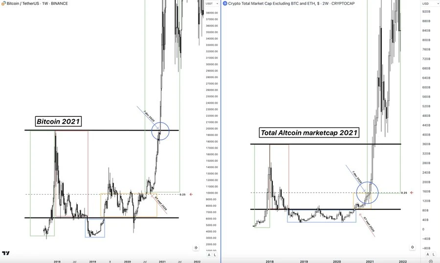 BTC 在 2021 年未能成功翻转 0.25 水平,并重新测试了区间低点。(就像历史上的 COVID 回调一样)