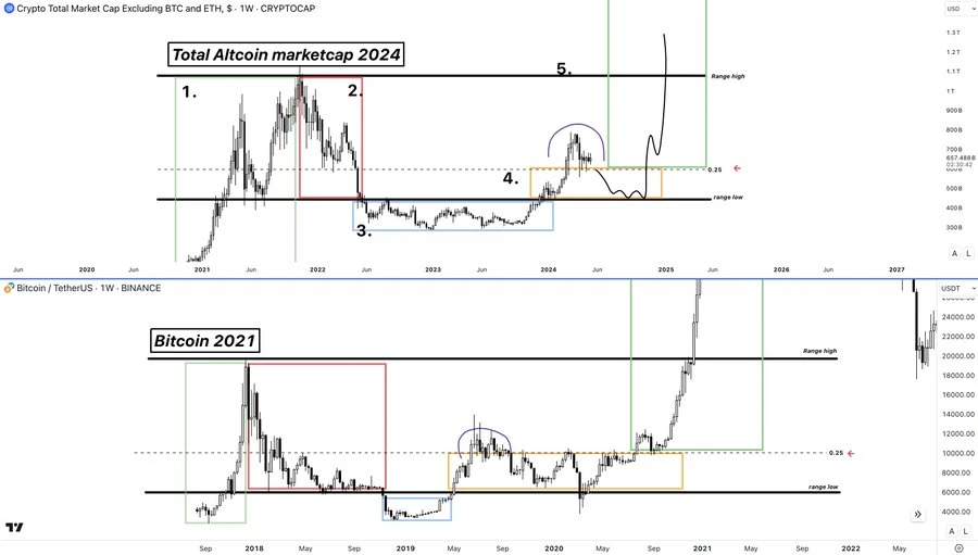 重要的是要明白,如果你基于上述理由(区间低点重获、加密货币和 AI 牛市周期结构等等)押注于山寨币的牛市,你实际上只是在押注一种交易设置 / 结构的发生。