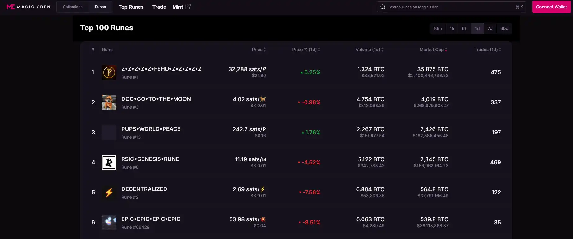Runes 是非常新的,大约只有三到四周,而 BRC 20 已经存在了差不多一年。Runes 有点像是更用户友好的 BRC 20 版本,不需要某些铭刻活动就可以转移它们。Runes 也是由开发 Ordinals 协议的同一个团队开发的。有一个小团队在负责 Ordinals 的核心开发,这也是 Runes 获得大量关注和炒作的原因之一。