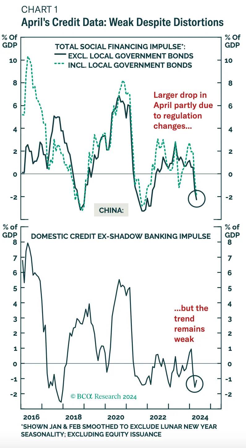 这些 BCA 研究图表清楚地显示了负信贷脉冲,这表明信贷货币创造不足。
