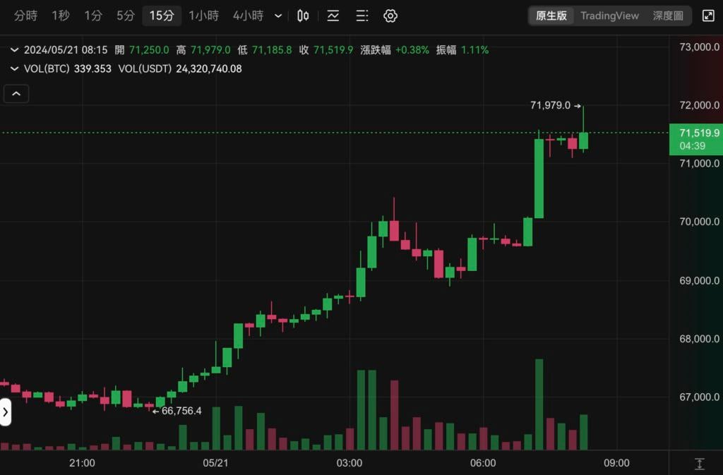 受 彭博 ETF 分析师 Eric Balchunas 今(21)晨态度大逆转,认为以太坊现货 ETF 通过机率大增的消息激励,以太坊一度暴涨 20% 触及 3,700 美元、比特币也一度逼近 7.2万美元,睽违 40 天再次成功站上七万美元大关。