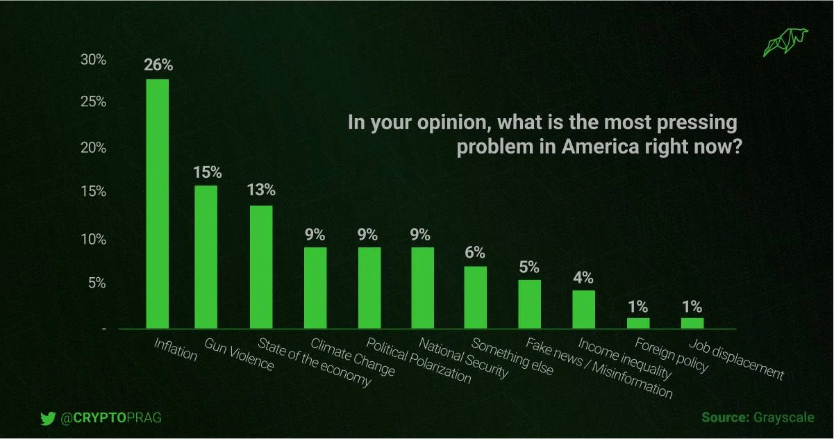 通货膨胀是美国选民最关心的问题,他们将经济稳定和支付账单的能力放在首位,而不是其他价值观,如家庭、爱国主义和社区参与。这种担忧与比特币的吸引力不谋而合,比特币因其硬性供应上限而常被视为货币贬值的对冲工具。近一半的选民在投资加密货币之前正在等待更明确的政策,这表明人们对监管清晰度的需求。