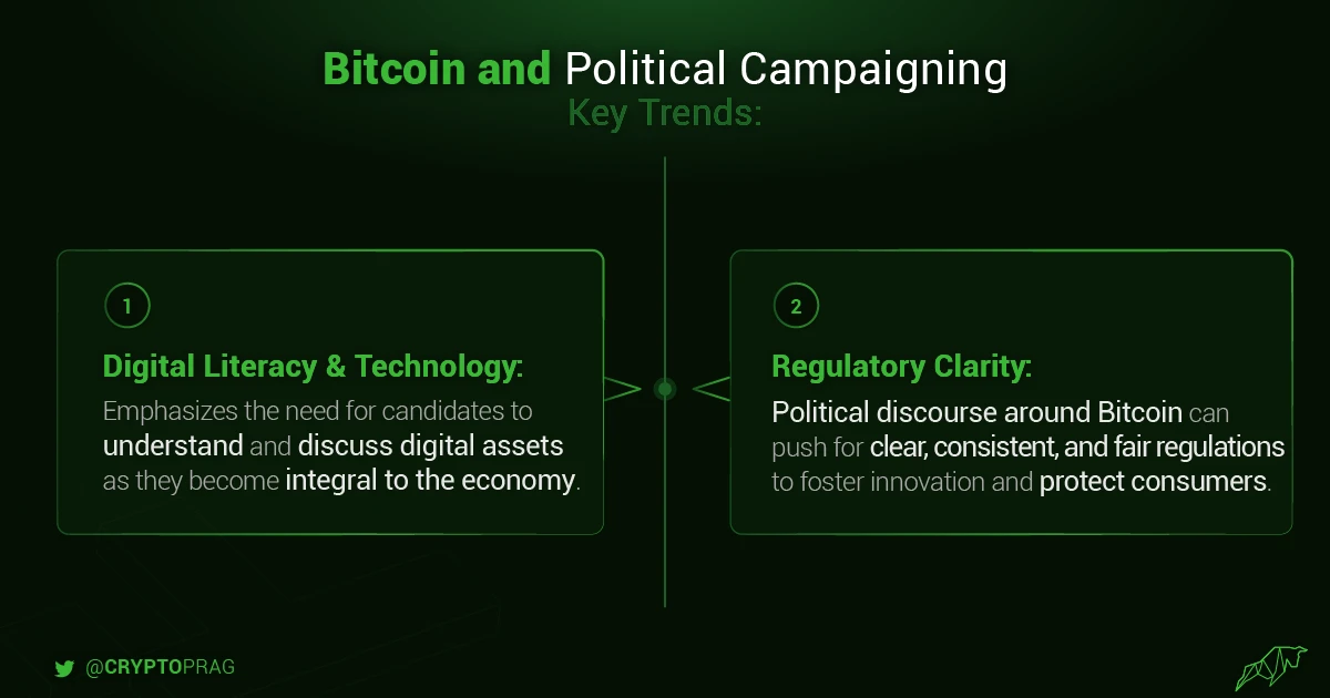 比特币在政治竞选中的整合突显了几个关键趋势。