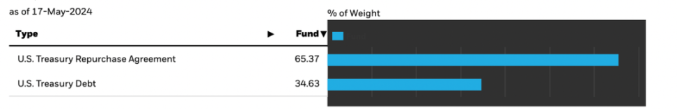 USDC 中,超过 90% 都是黑石管理的货币基金,而这个基金所持只有美债的回购条款和美债本身。