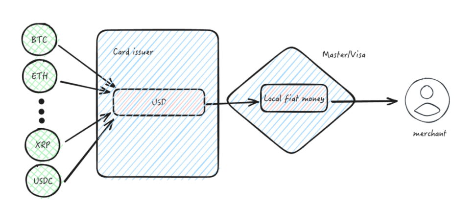 哪怕不用稳定币抢夺链上交易媒介的地位,链下所有的支付都绕不开持牌支付机构的胁迫。像 Master 和 Visa 拥有全世界最广泛的支付接口,迫使数字加密储值卡的发行商必须按照它的规矩来:用美元来结算。只要发卡机构能做到标准的 KYC,AML,把世界各类加密资产合规地转化为美元,使用美国的金融机构就能够替持币者完成全球支付。Binance 的支付、Dupay 的支付,都是采用这样的形态去完成的。这个流程里,数字加密资产仅仅作为金融资产,或者储值手段而存在,在支付环节中无足轻重。
