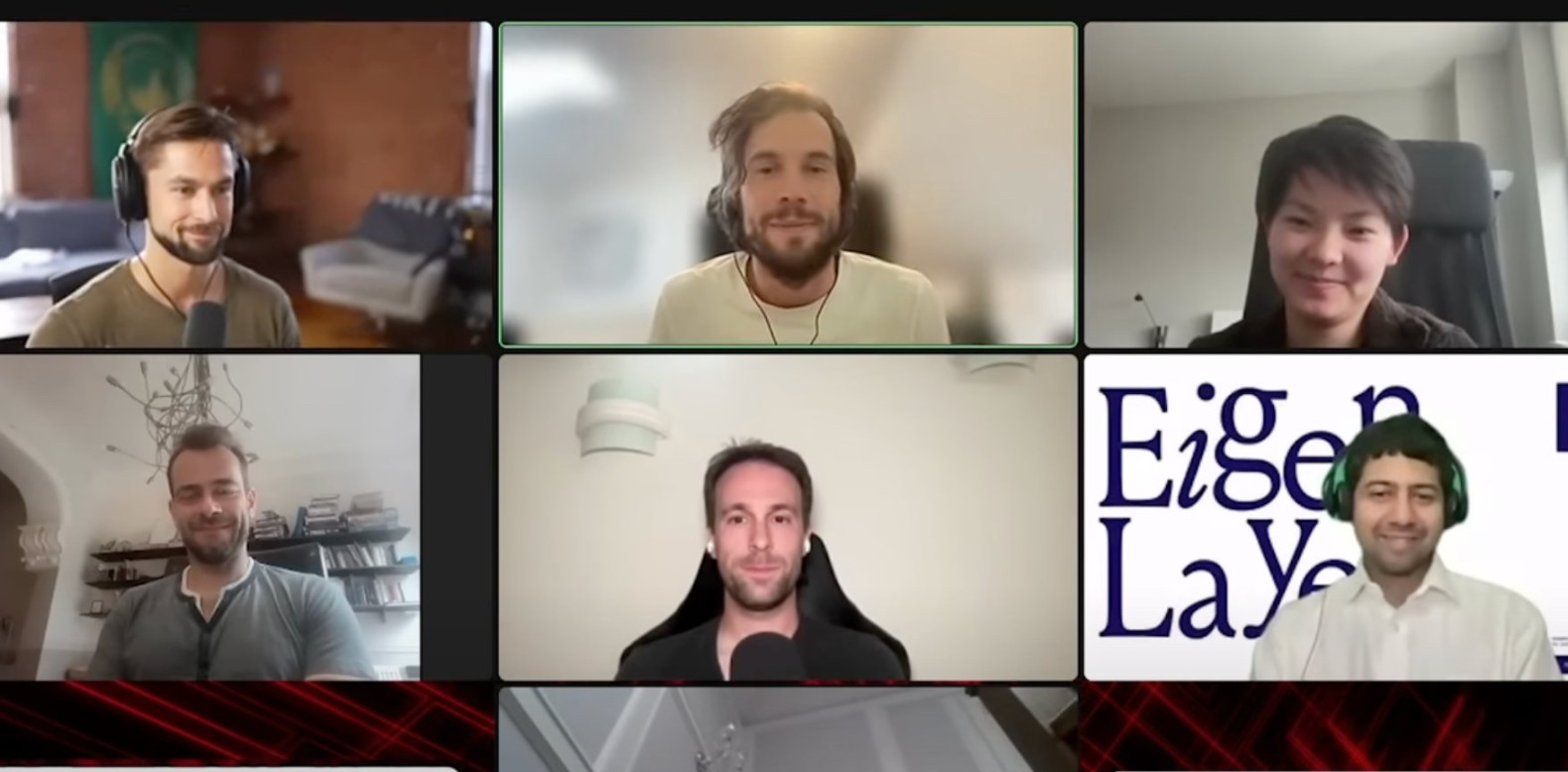 而现在下面图片中的 6 个人都持有 EigenLayer 的权益(通过天使投资、顾问职位或雇佣关系),播客中的第七个人是 Vitalik。