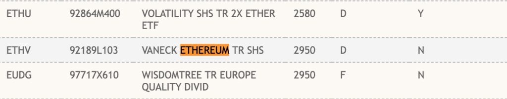 VanEck、富兰克林的以太坊现货 ETF 已在 DTCC 列出