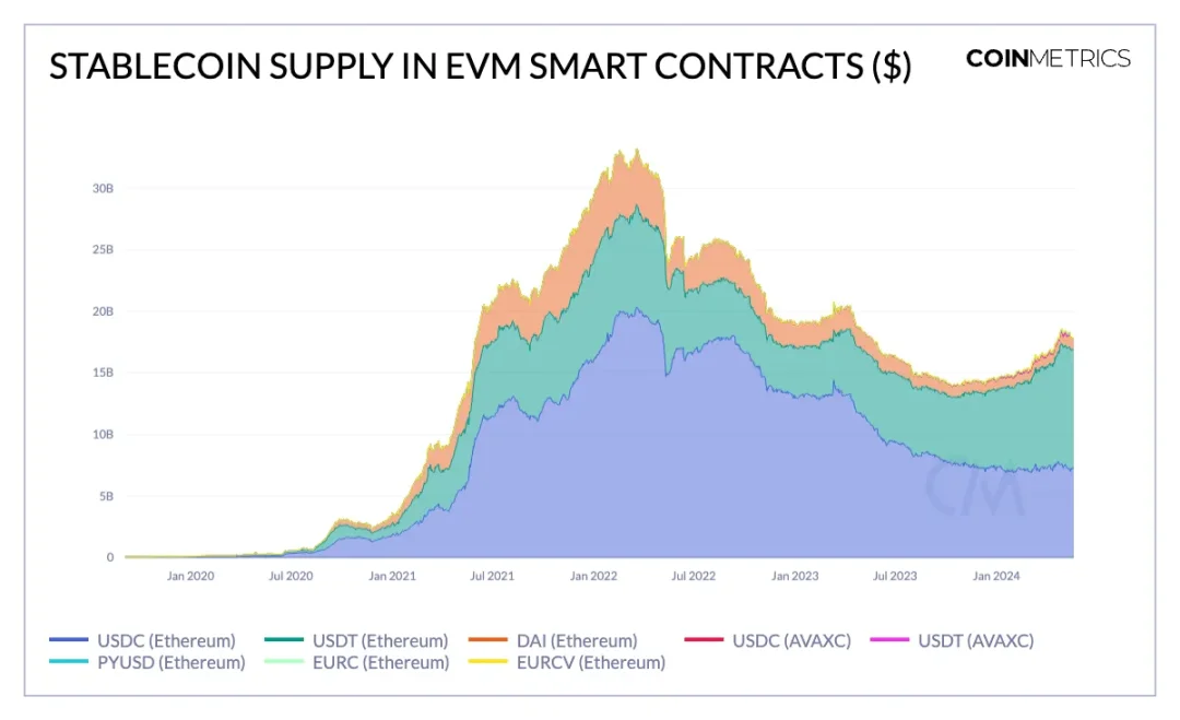 来源:Coin Metrics Network Dats Pro(注:该图表不包括在以太坊 Layer 2 发行的稳定币)
