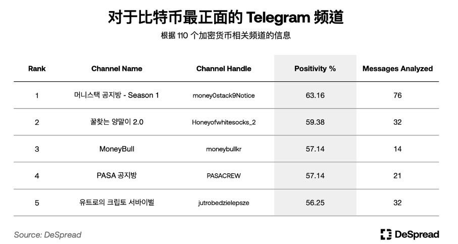 值得注意的是,虽然该频道的正面信息比例较高,并不代表有任何购买的推荐。而除了客观的信息外,也包含了比特币生态系统的技术方面的信息。